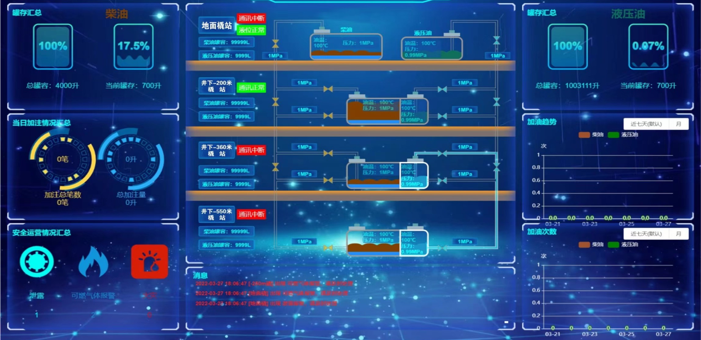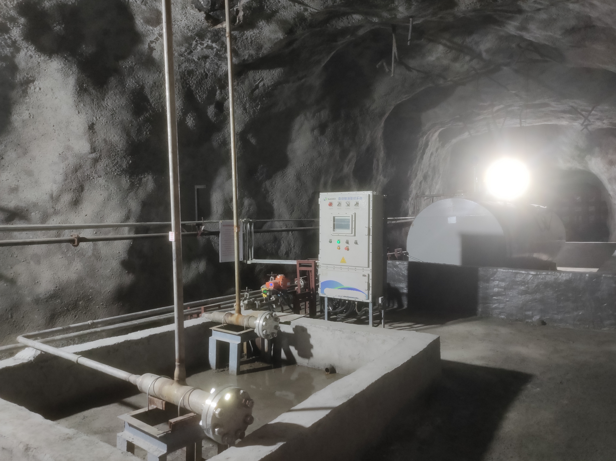 凡口鉛鋅礦井下680米智能供油系統(tǒng) 目前正有序施工中, 預(yù)計9月底完工并投入使用。該項(xiàng)目為全國首創(chuàng), 由韶關(guān)企業(yè)進(jìn)行技術(shù)攻堅(jiān) 并申請多項(xiàng)國家專利, 擬申報吉尼斯世界紀(jì)錄 “全球最深的智能供油系統(tǒng)”。 凡口鉛鋅礦井下智能供油系統(tǒng) 需在地面設(shè)置橇裝加油裝置, 并分別在地下 330米、480米和680米處 建設(shè)智能化供油系統(tǒng), 通過鉆孔鋪設(shè)輸油管線, 將油品從地面輸送到井下。 地下330米智能加油點(diǎn), 目前已進(jìn)入收尾階段, 現(xiàn)場有兩根 從地面裝置接下來的輸油管, 用于工程車加油, 另一邊也有兩根輸油管輸送到 地下480米和680米的智能加油點(diǎn)。 別看油管很細(xì),鉆孔不大, 但施工難度并不小, 全長3千多米的輸油管, 垂直打孔偏差不能超過1米。 作為亞洲最大的 單體鉛鋅銀礦生產(chǎn)基地, 凡口鉛鋅礦 有井下工程車輛和設(shè)備100多臺, 井下用油量大。 井下智能化供油系統(tǒng)啟用后, 不僅解決井下用油安全、環(huán)保風(fēng)險, 同時降低生產(chǎn)用油成本, 推進(jìn)凡口鉛鋅礦建設(shè)智能化礦山, 實(shí)現(xiàn)“無人開采”。 如果鉆孔偏差太大,就找不到鉆下來的孔,影響輸油管道的布設(shè),增大成本。3千多米有5千多個焊接點(diǎn),所有的焊接口都要達(dá)到高壓管道的焊接要求,這個項(xiàng)目是全國首創(chuàng),在全國所有礦山企業(yè)中,我們是首次使用通過輸油管道往井下輸油,并且實(shí)現(xiàn)智能控制的方案。 這個月底把地下330米加油點(diǎn)完工,開始加油,9月底把底下480米和680米開通使用。希望通過這個項(xiàng)目打造創(chuàng)新科技的韶關(guān)樣板,把先進(jìn)的經(jīng)驗(yàn)和技術(shù)推廣到全省、全國乃至全球。